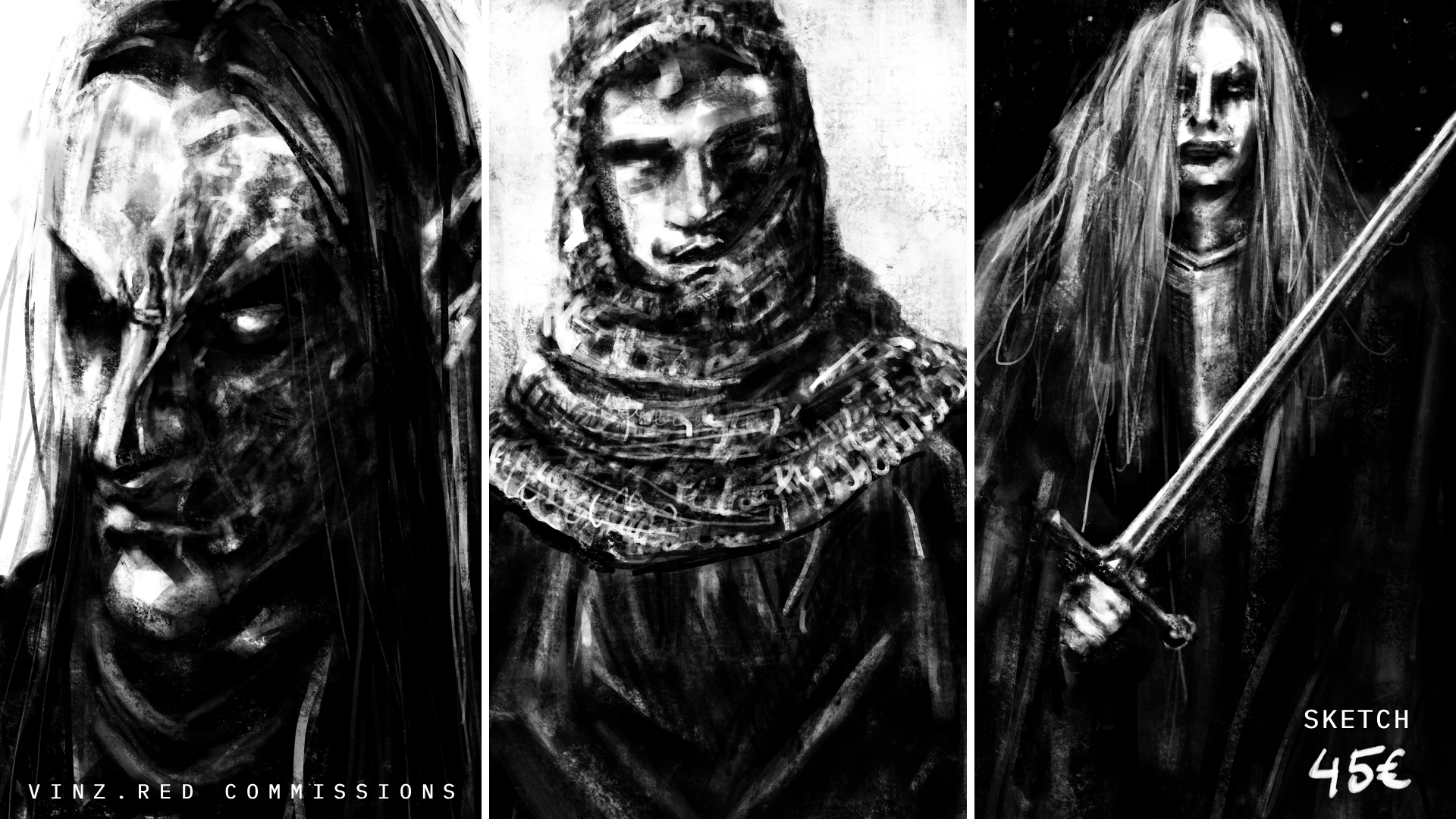 All commissions will be black and white only in a rough, sketchy style.